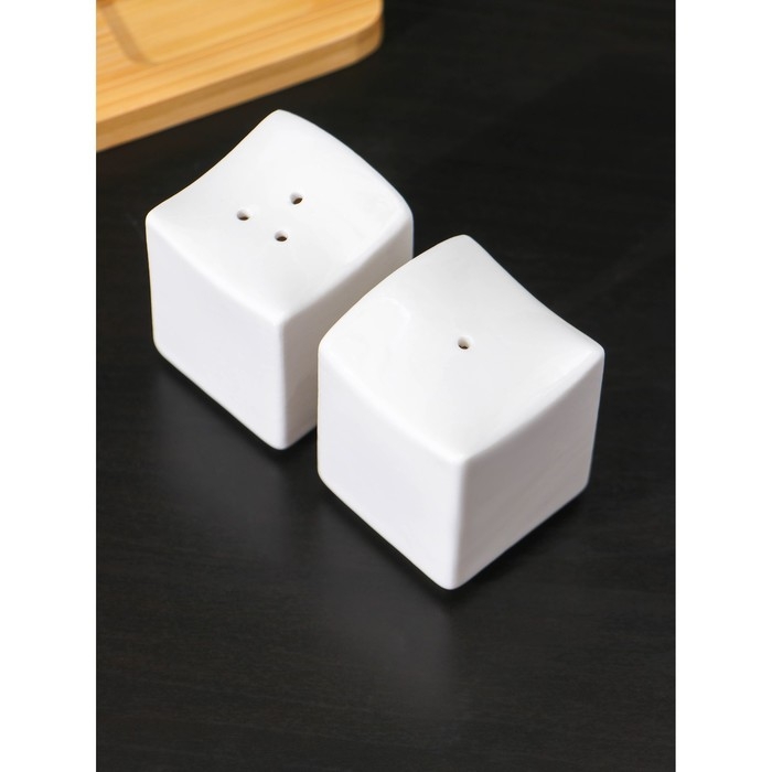 Набор фарфоровый для специй на подставке из бамбука BellaTenero «Эстет. Грани», 2 предмета: солонка 100 мл, перечница 100 мл, цвет белый