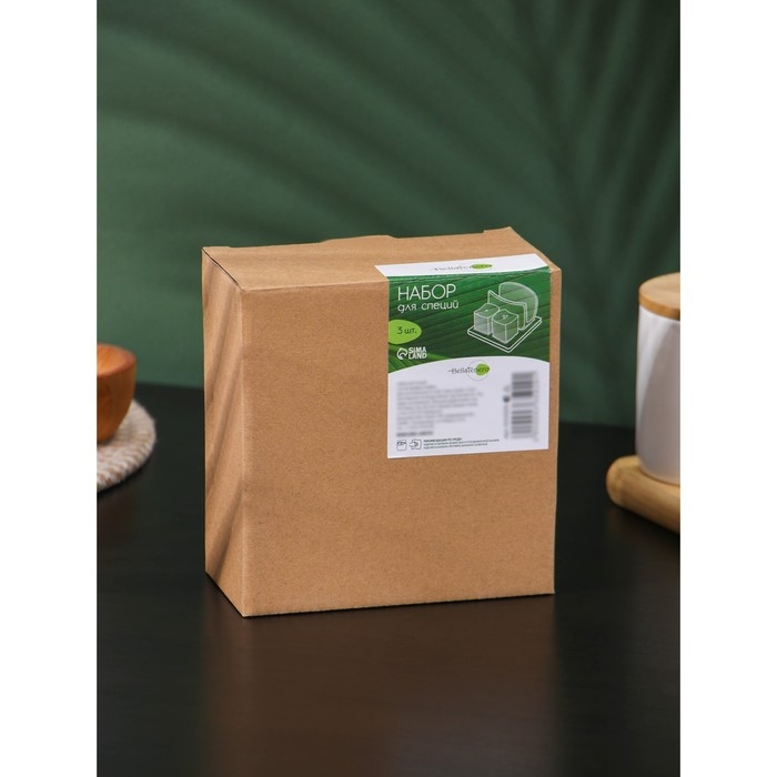Набор фарфоровый для специй BellaTenero, 3 предмета: солонка 80 мл, перечница 80 мл, сахарница с ложкой 300 мл, цвет белый