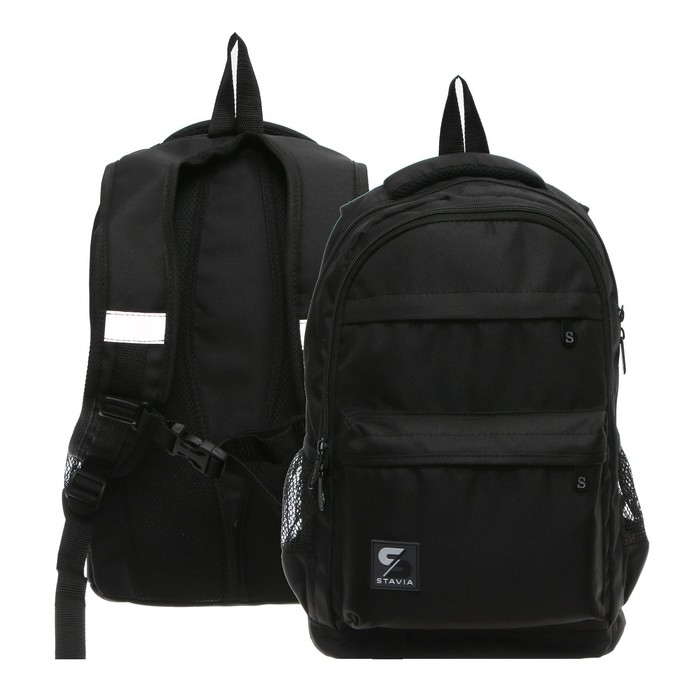Рюкзак молодёжный, школьный, 41×28×15 см, эргономичная спинка, Stavia «Реалист» чёрный