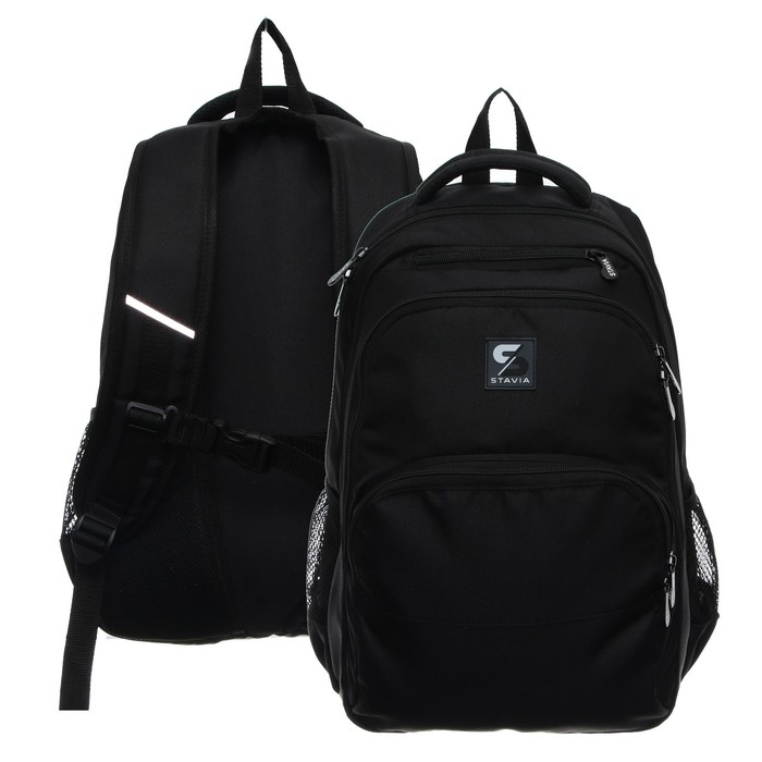 Рюкзак молодёжный, школьный, 44×34×13 см, эргономичная спинка, Stavia «Спутник» чёрный