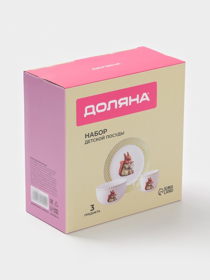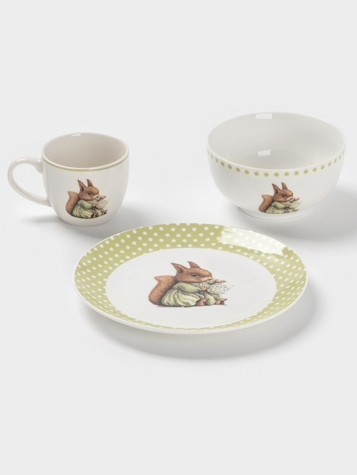 Набор детской посуды 3 предмета Доляна "Белочка" кружка, миска, тарелка