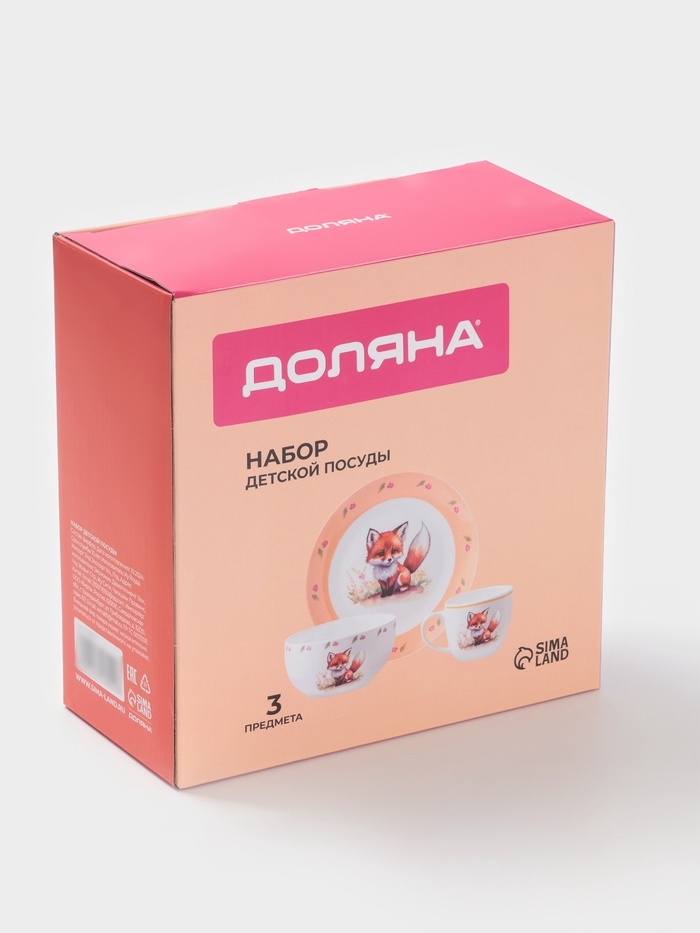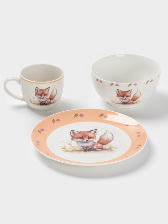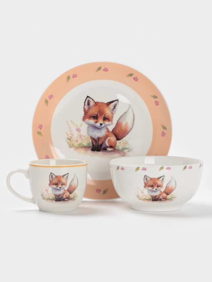 Набор детской посуды 3 предмета Доляна "Лисенок" кружка, миска, тарелка