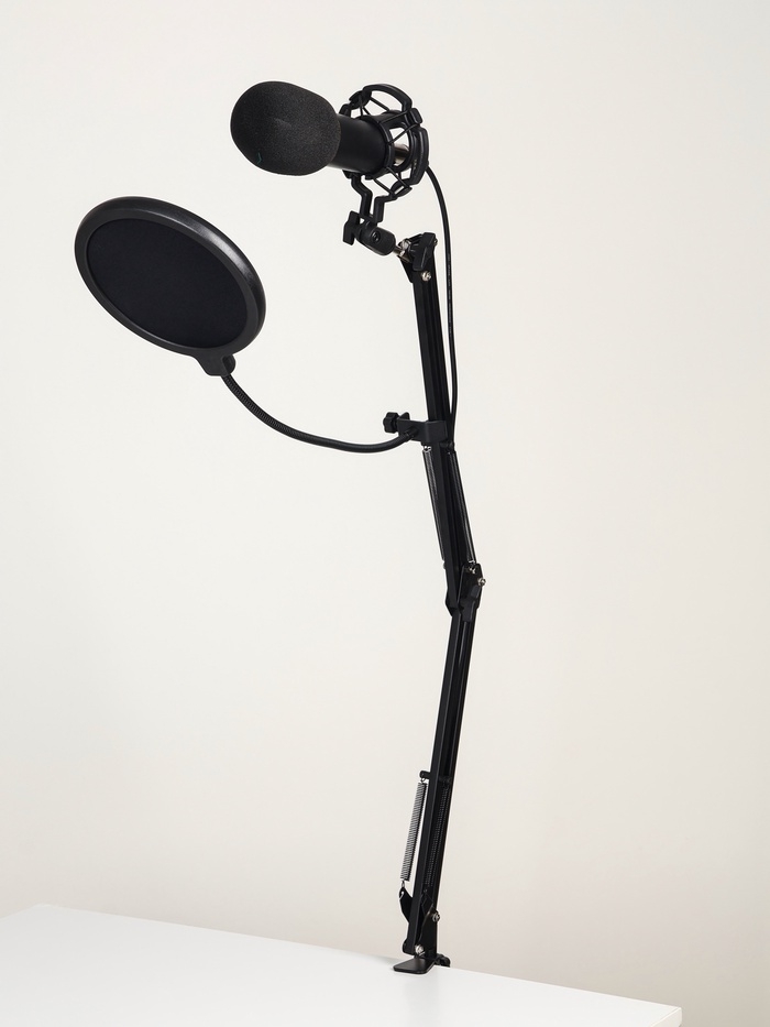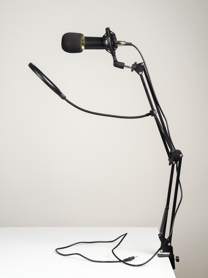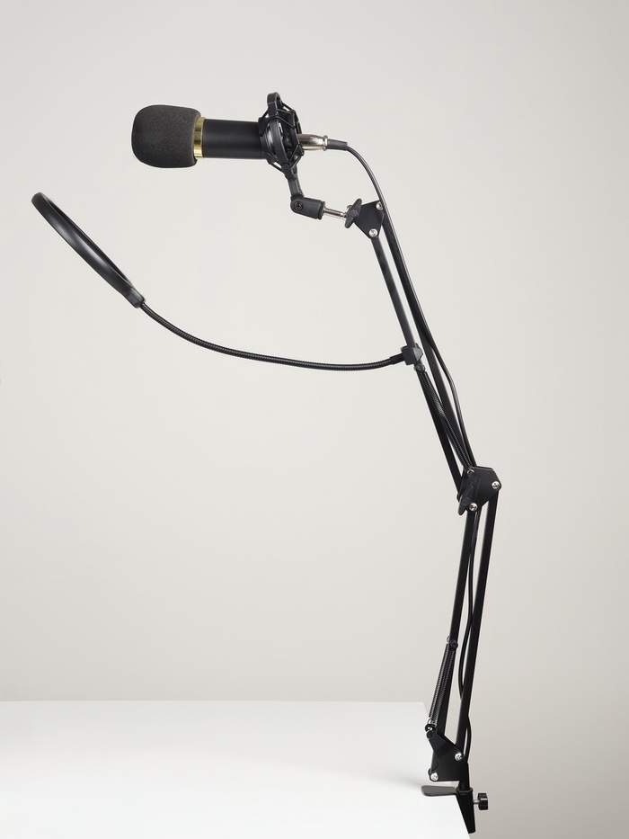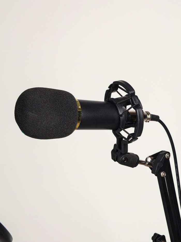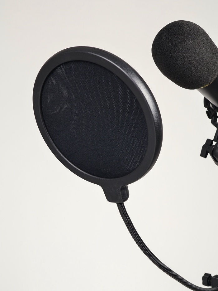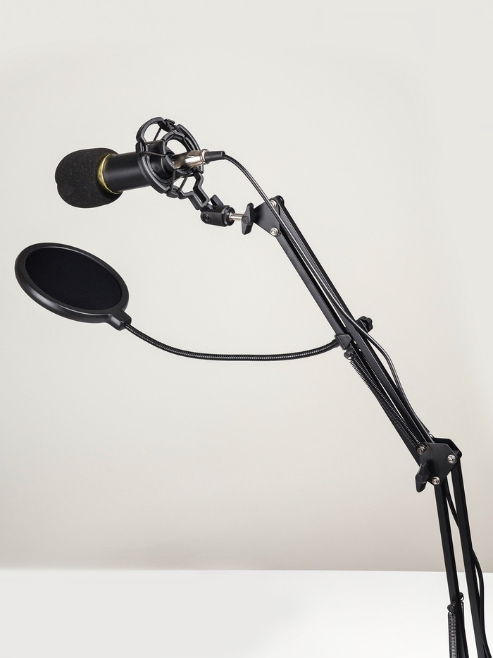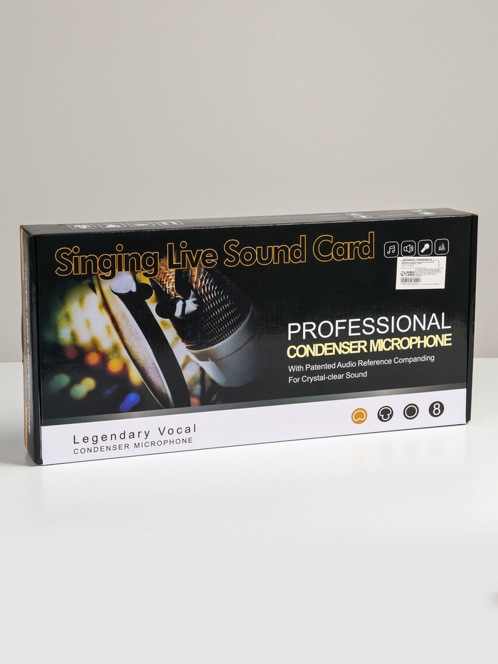 Микрофон конденсаторный Music Life золотой: кабель, ветрозащита, стойка