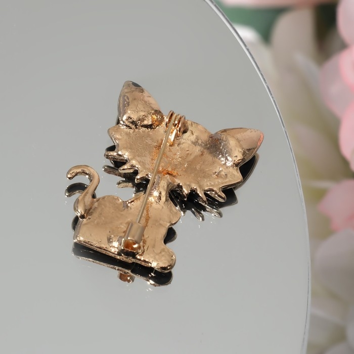 Брошь «Кошечка» хитрая, цвет черно-зеленый в золоте