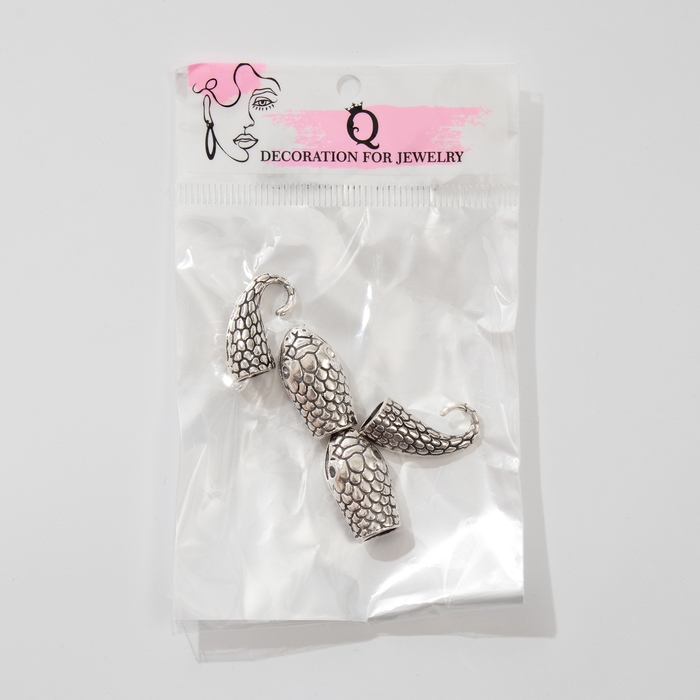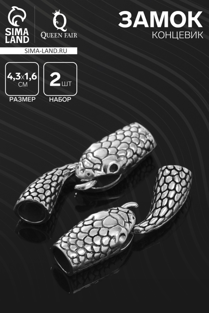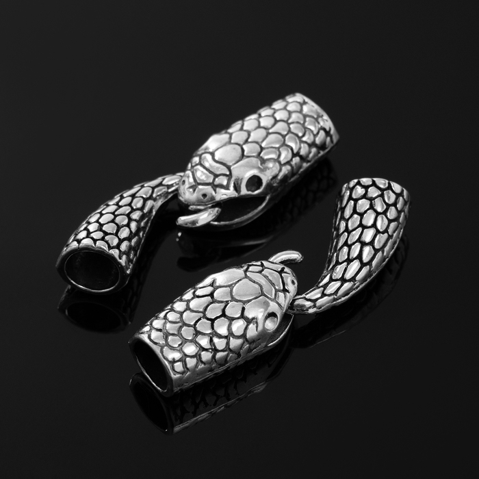 Замок-концевик «Змея», 4,3×1,6 мм (внутренний 0,7 мм),(набор 2 шт.) цвет чернёного серебра