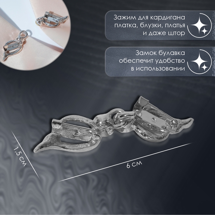 Зажим для кардигана - изысканный аксессуар, в том числе на поверхности платья, шали или свитера, данный элемент можно использовать даже для штор. Зажимы актуальны как в повседневном так и праздничном образе, добавляют очарования вашей одежде при сочетании различных нарядов.