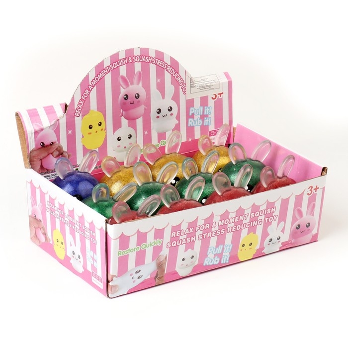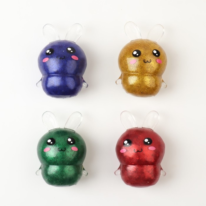 Мялка «Зайка» с блёстками, цвета МИКС