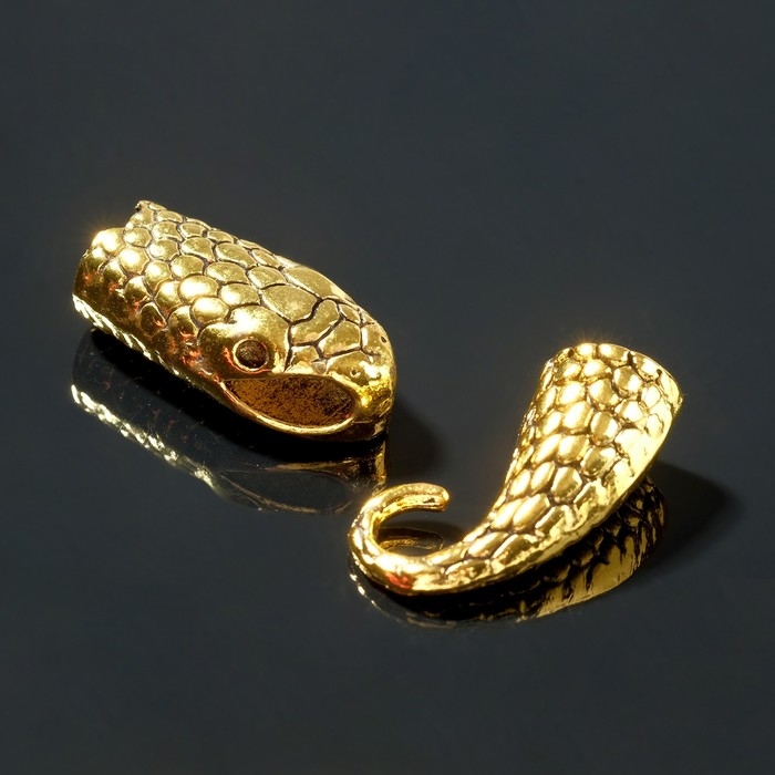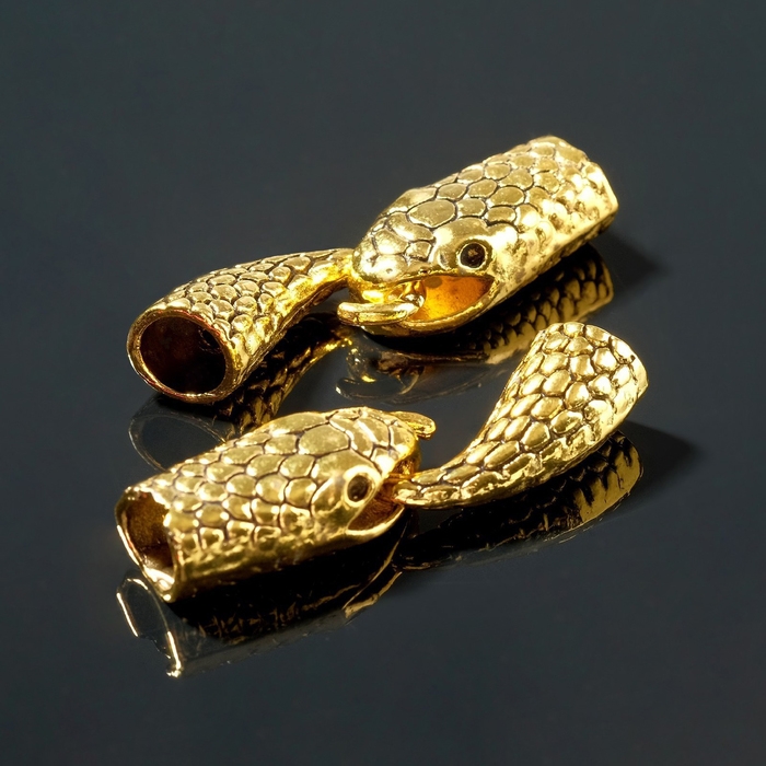 Замок-концевик «Змея», 4,3×1,6 мм (внутренний 0,7 мм), (набор 2 шт) цвет чернёное золото