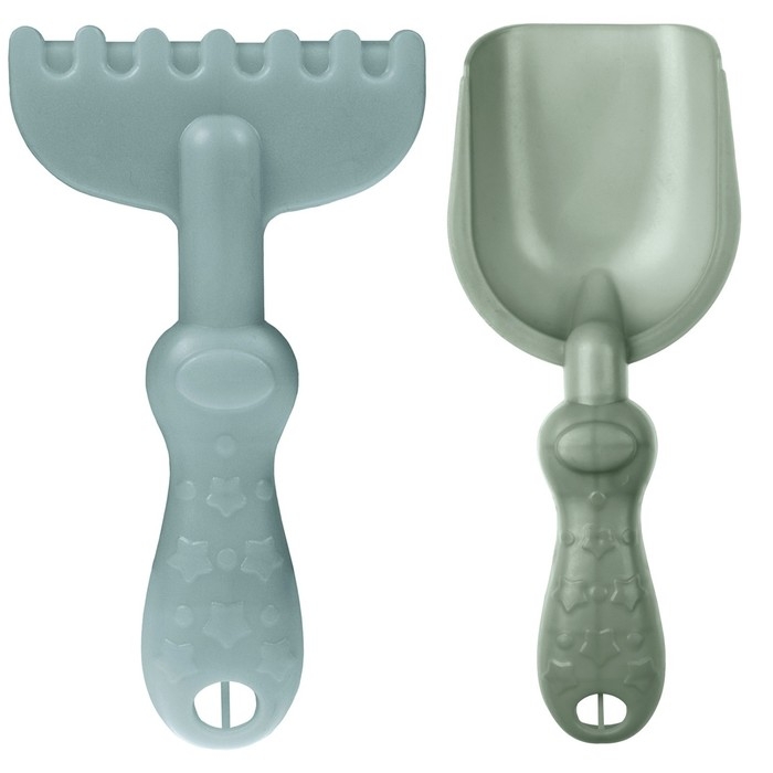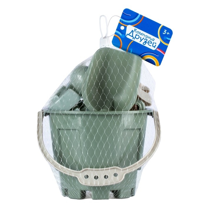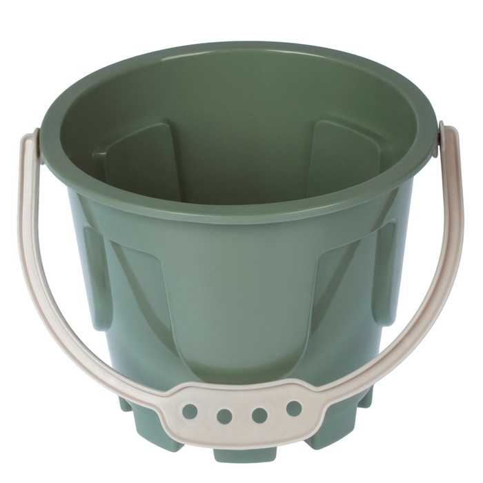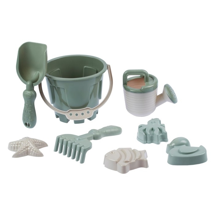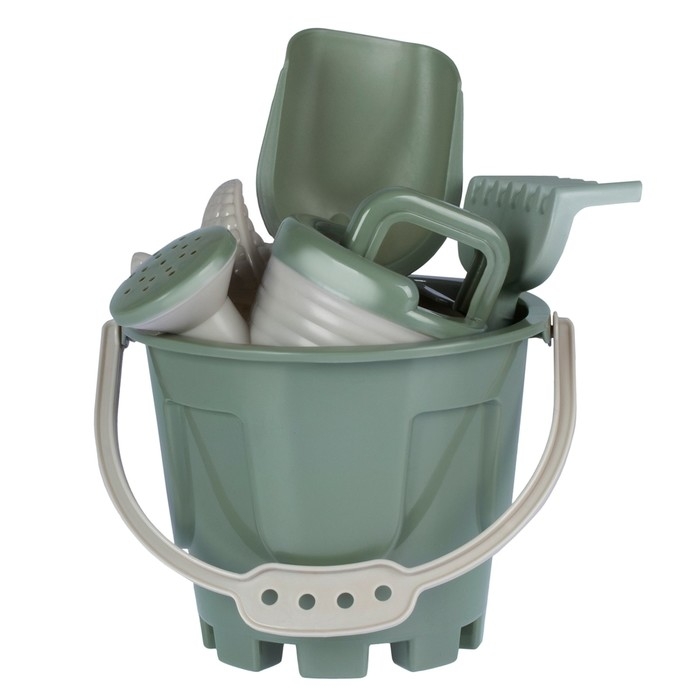 Песочный набор: ведро 1,2 л, лопатка, грабли, 4 формочки, лейка 0,2 л, бледно-зелёный