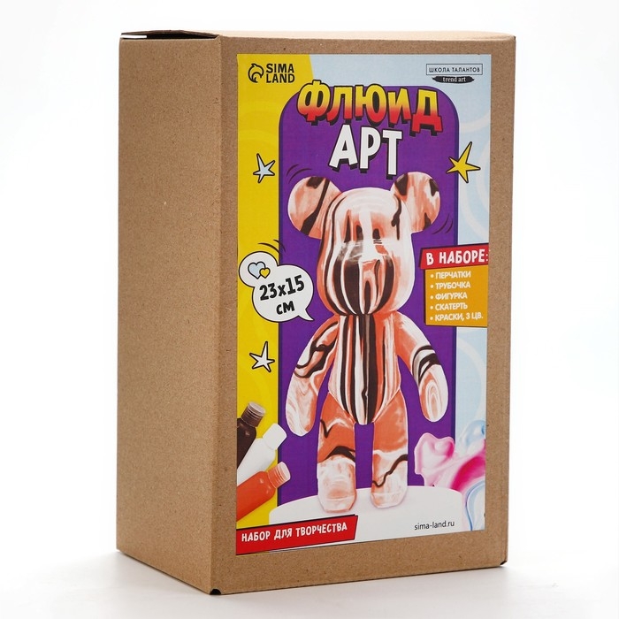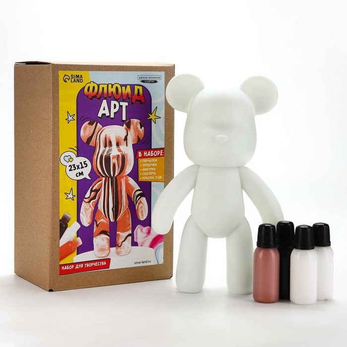 Рисование акрилом на пластиковой фигурке «Мишка», бронзовый, набор для творчества Флюид-арт