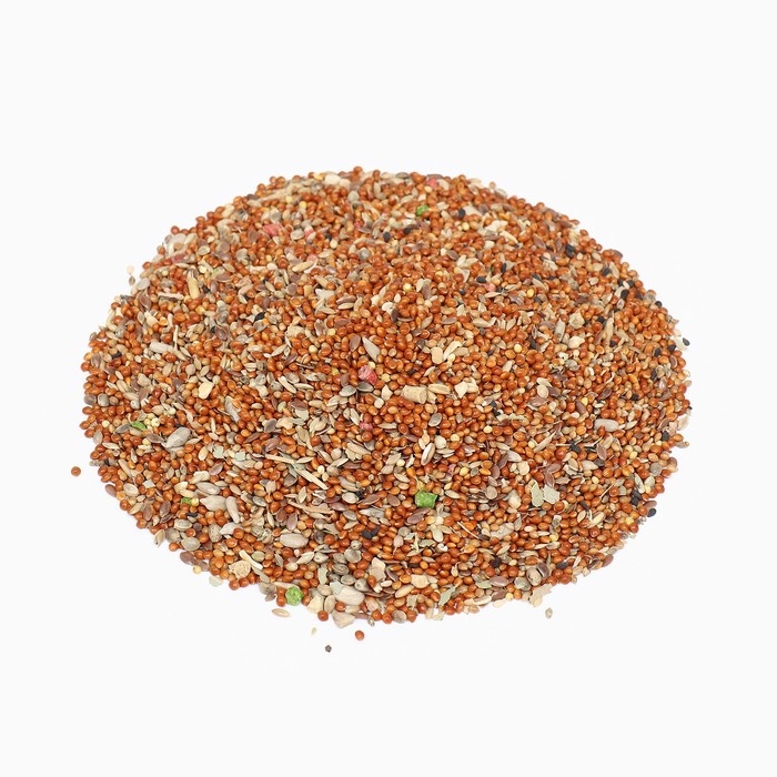 СОСТАВ: Просо красное, просо желтое, овсяная крупа, канареечное семя, арахис, семена льна, семена конопли, кунжут, семена подсолнечника, кукурузная мука, пшеничная мука, семена травянистых растений, листья эвкалипта, ракушка морская.