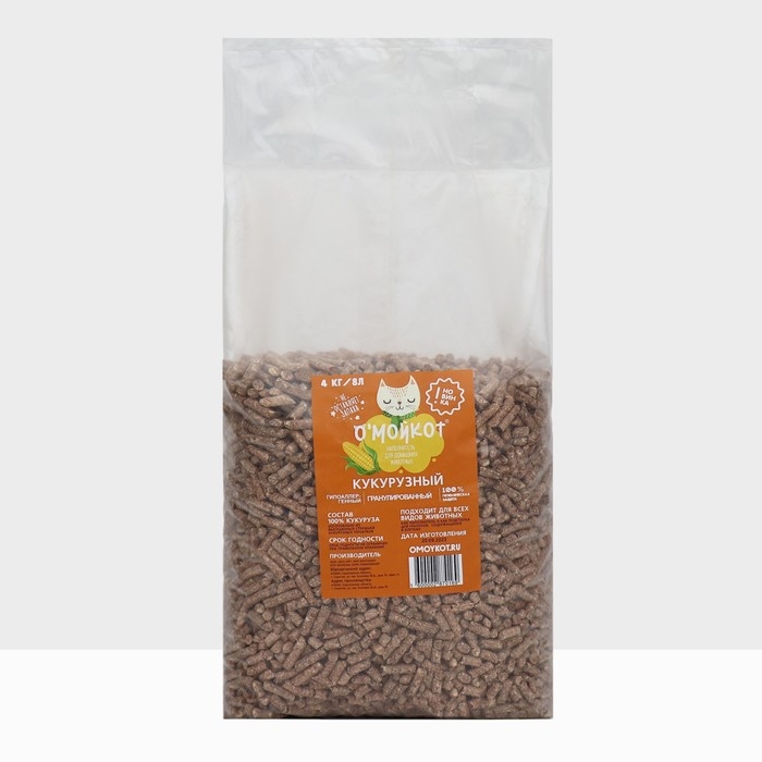 Наполнитель для кошачьего туалета "ОМОЙКОТ" кукурузная гранула 6 мм. 4 кг.