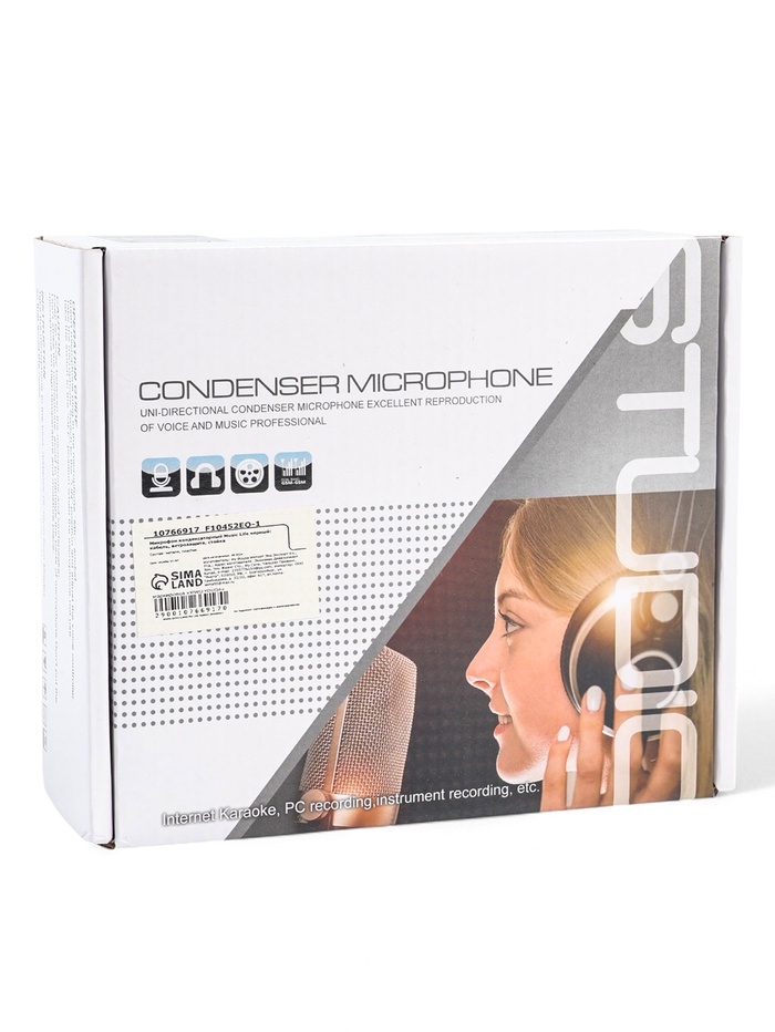 Микрофон конденсаторный Music Life черный: кабель, ветрозащита, стойка