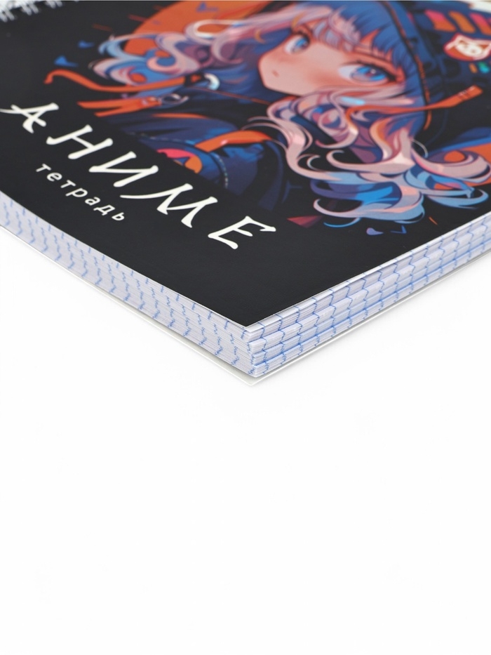 Тетрадь 96 листов в клетку, на гребне «Аниме. Девочка» белые листы, МИКС