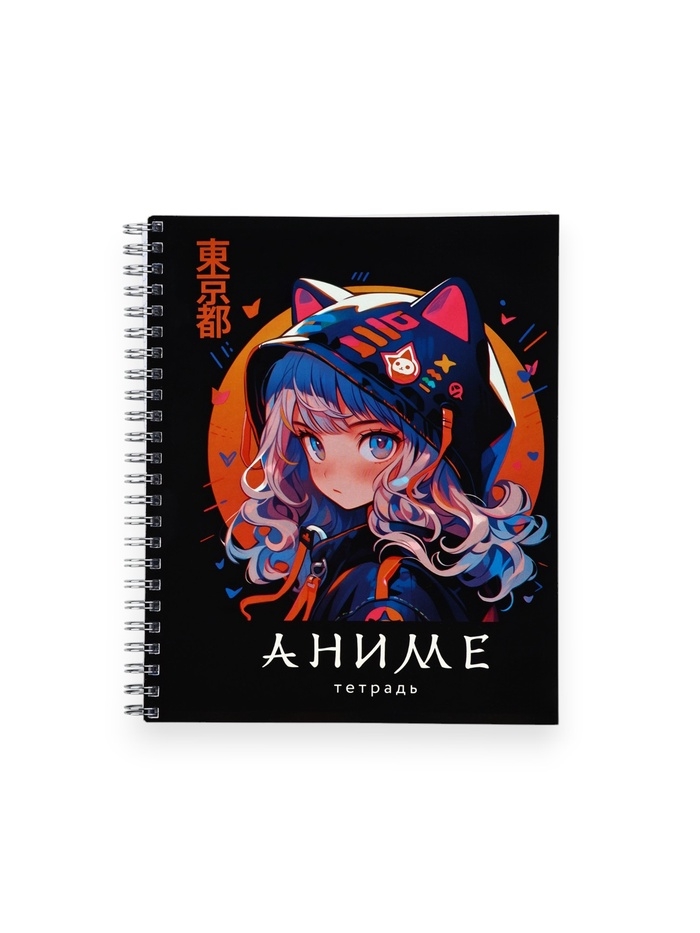 Тетрадь А5, 96 листов на спирали «Аниме девочка кошка» уф лак