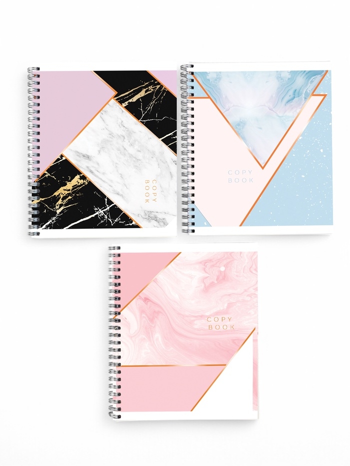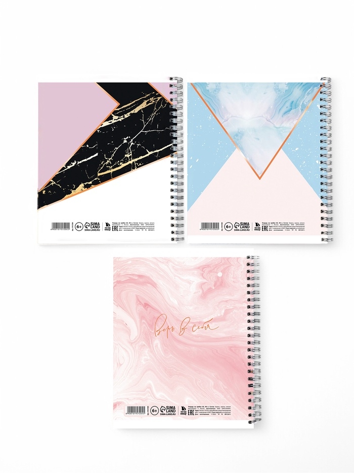 Тетрадь А5, 96 листов на спирали, 3 шт. «Мрамор» МИКС