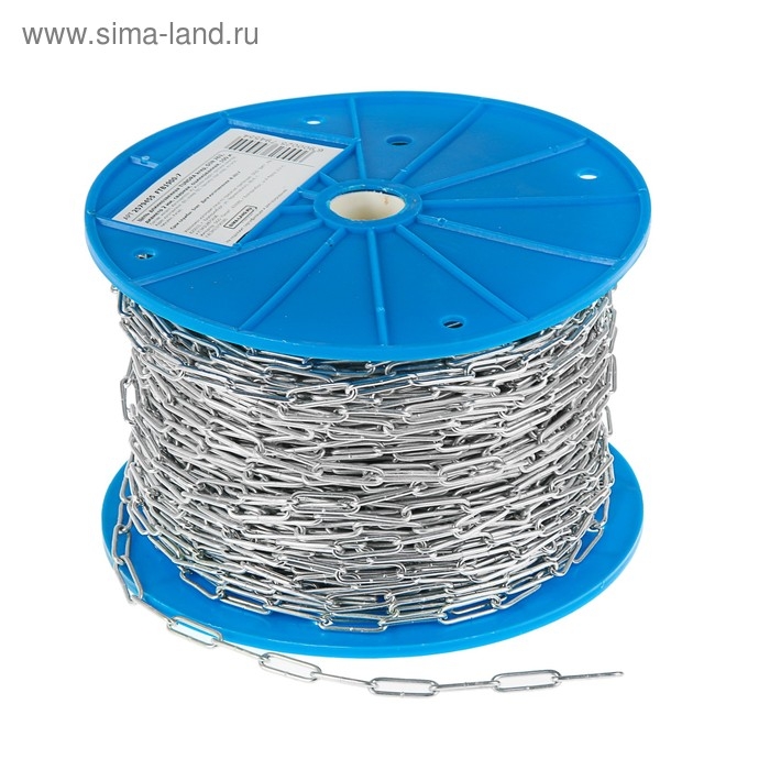 Цепь длиннозвенная ТУНДРА krep, DIN763, диаметр 2 мм, сварная, оцинкованная, 100 м