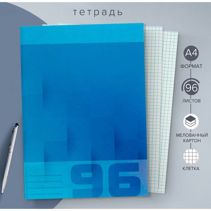 Тетрадь А4, 96 листов в клетку Calligrata "Однотонная", обложка мелованный картон, блок №2, белизна 75%, синяя, (серые листы)