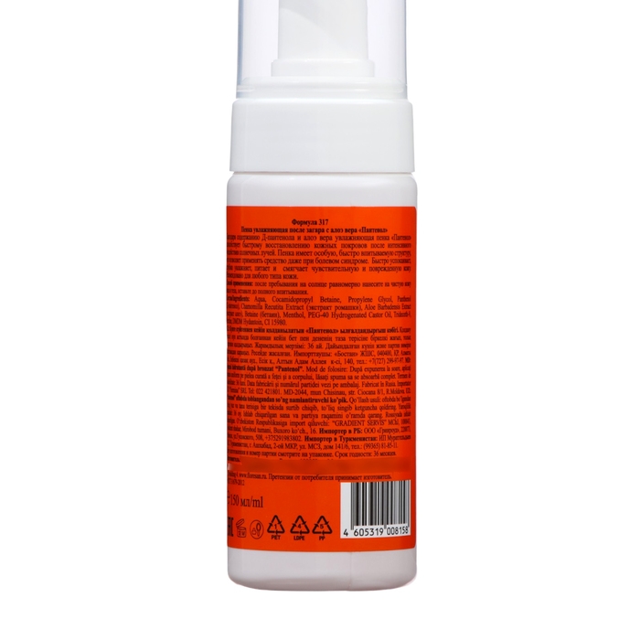 Пенка увлажняющая после загара Floresan «Пантенол. Алоэ вера», быстрая помощь при солнечных ожогах, 150 мл