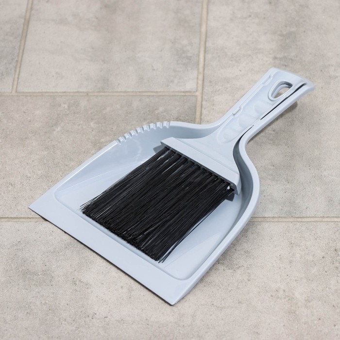 Щётка для пола, с совком-ловушкой, с крышкой, цвет серый