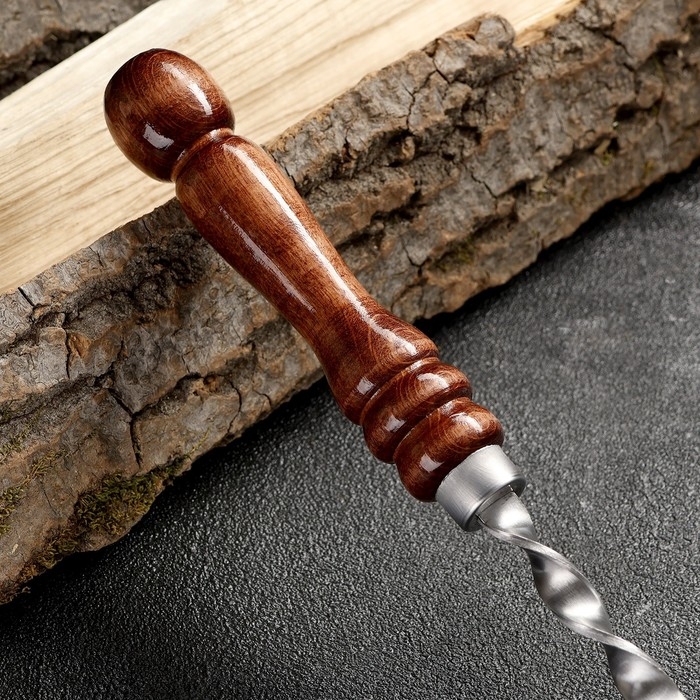 Кочерга узбекская 30/1 см, полная длина 54 см, сталь 3 мм, с узором, с деревянной ручкой