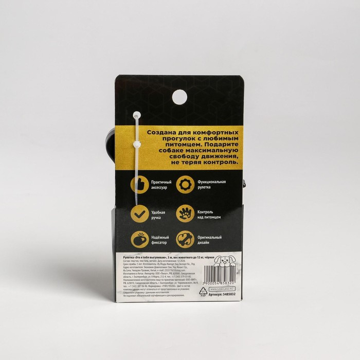 Рулетка «Это я тебя выгуливаю» 3 м, max=12 кг, чёрная