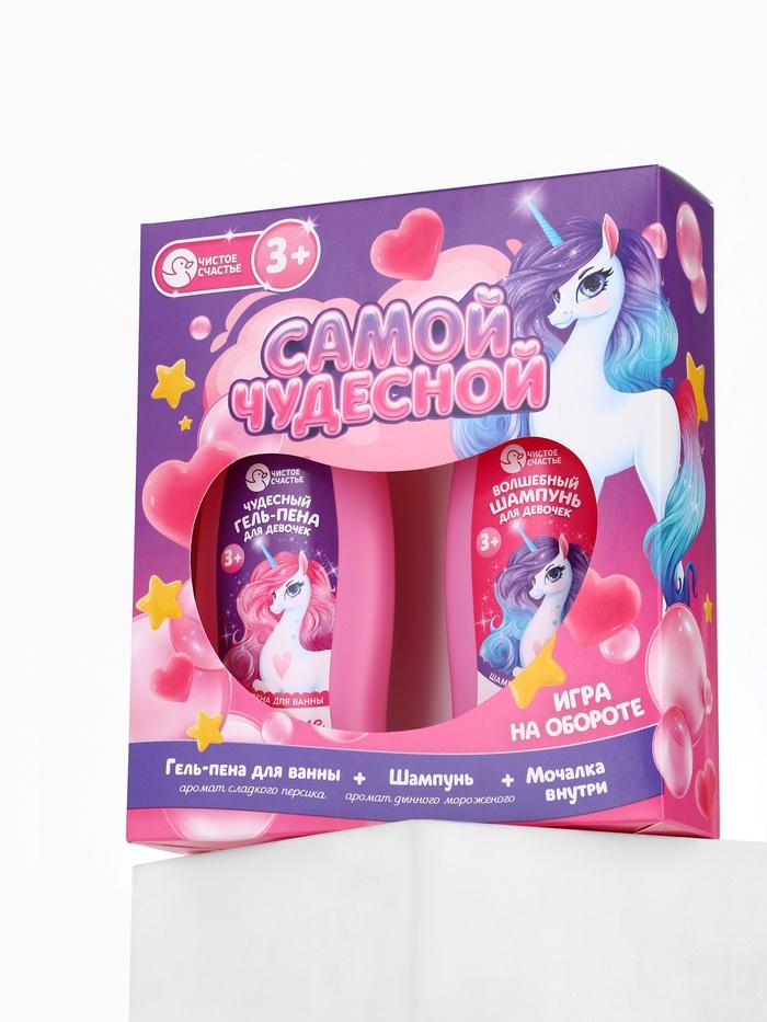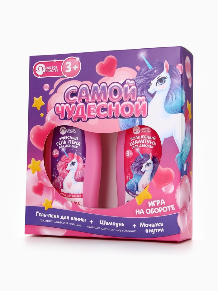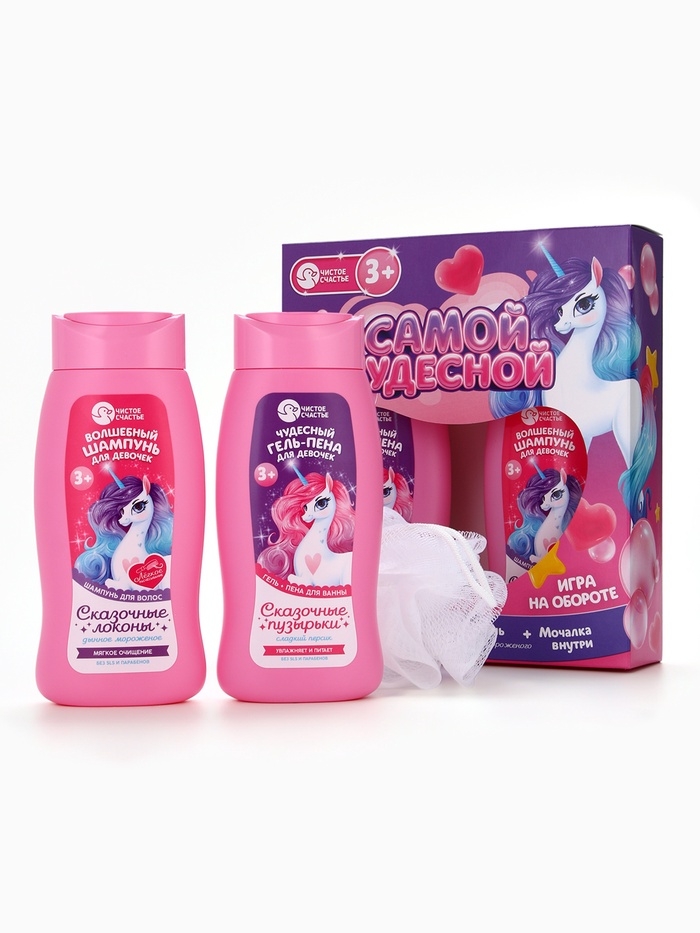 Набор детский "Самой чудесной", гель-пена 250 мл, шампунь 250 мл, мочалка 25 гр