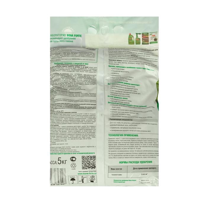 Удобрение Бона Форте газонное с защитой от мха, с цеолитами, 5 кг