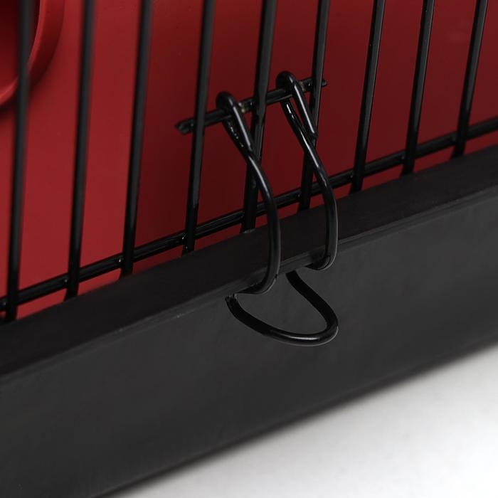 Клетка также оборудована специальным поддоном, облегчающим процесс уборки, а удобная ручка максимально упрощает транспортировку изделия.