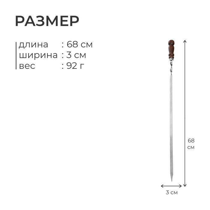 Шампур с деревянной лакированной ручкой, 68 х 1,2 х 0,25 см