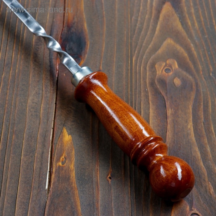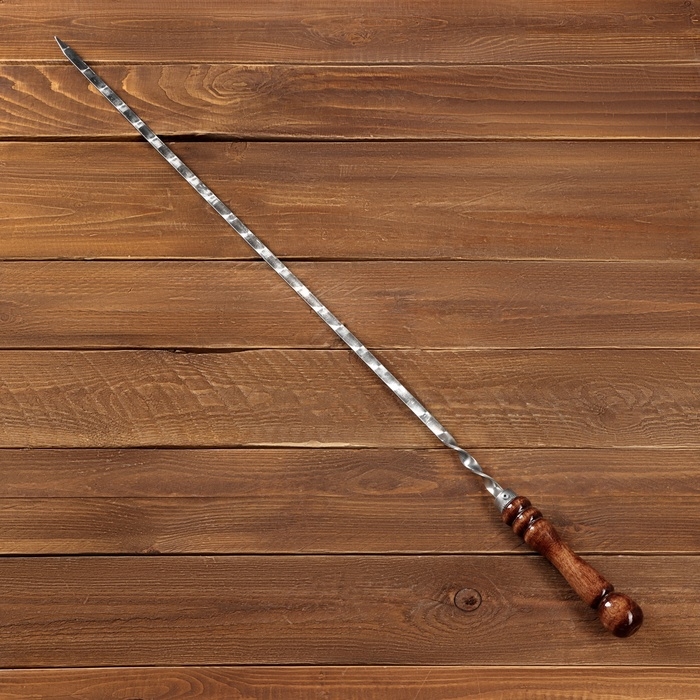 Шампур с деревянной ручкой, рабочая длина - 60 см, ширина - 10 мм, толщина - 2.5 мм, с узором