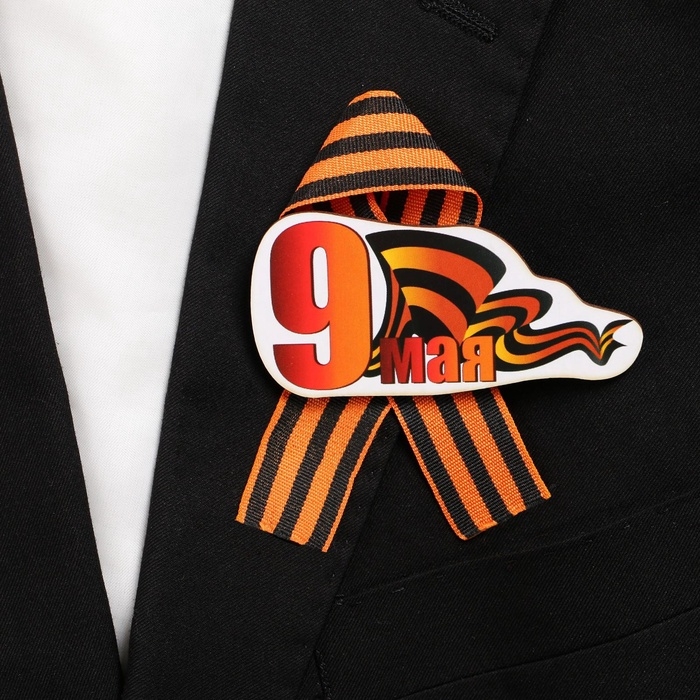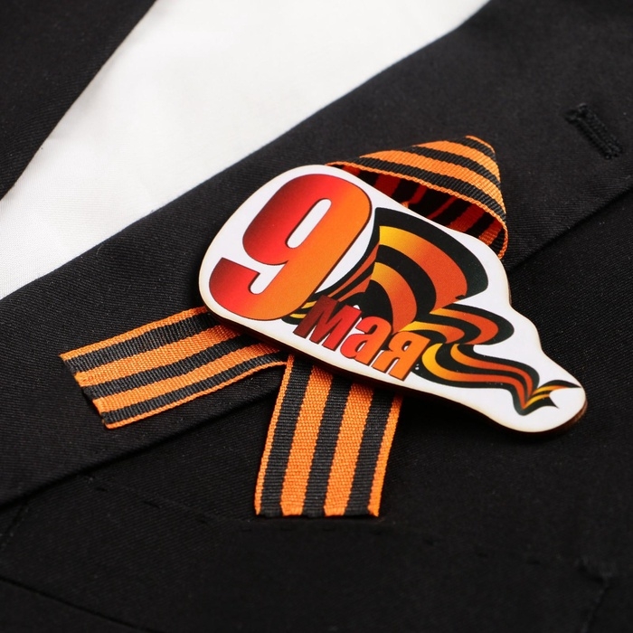 Значок деревянный «9 Мая», с георгиевской лентой