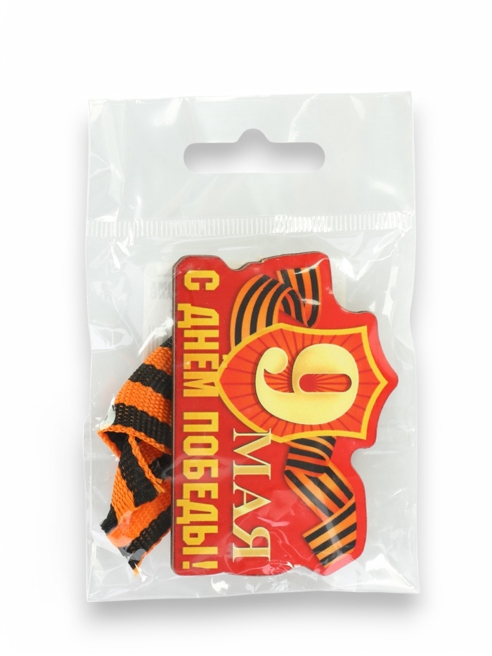 Значок деревянный на 9 мая «С Днём Победы!», с георгиевской лентой