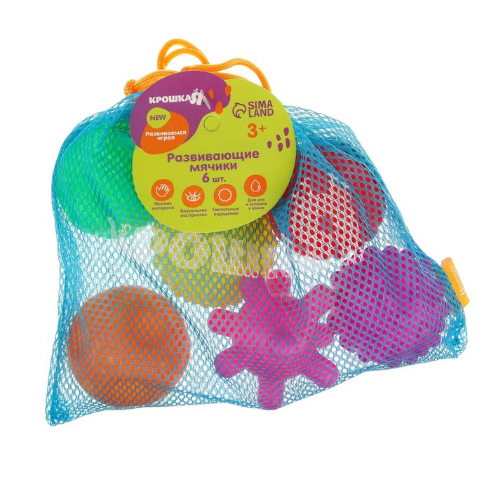 Набор развивающих тактильных мячиков «В мешочке», с пищалкой, 6 шт, Крошка Я
