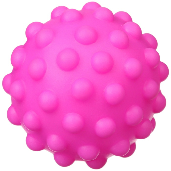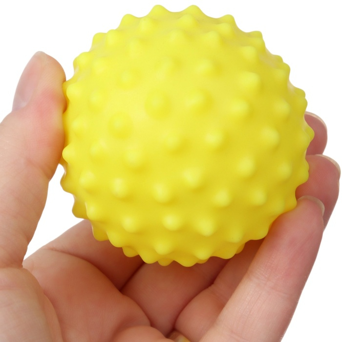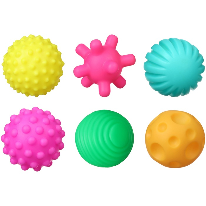 Мячики с рельефной массажной поверхностью способствуют развитию мелкой моторики и тактильных ощущений. Давление на фактурную поверхность мячиков стимулирует и благоприятно воздействует на нервные окончания, ответственные за большинство процессов в организме. Шарики имеют яркие цвета, которые способствуют развитию зрения, а пищалка внутри развивает слуховое восприятие.