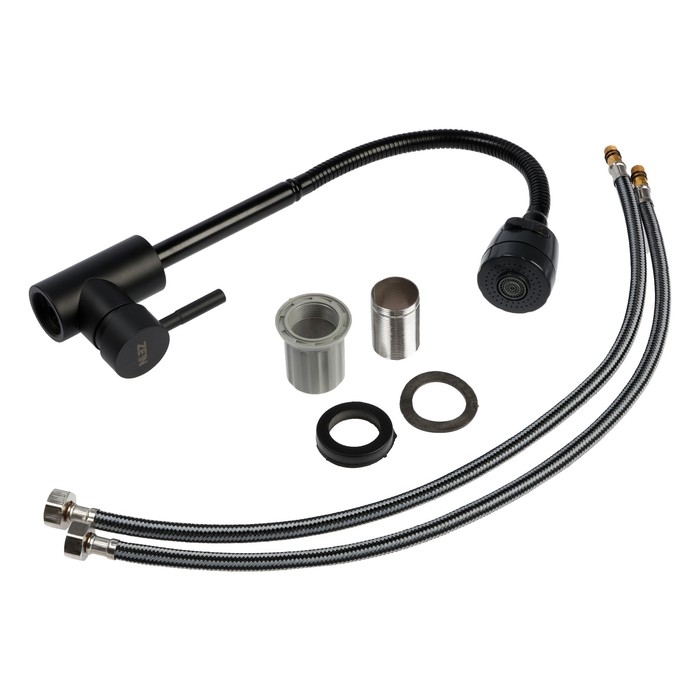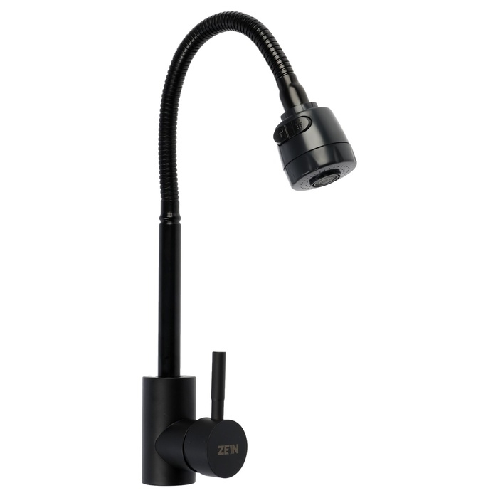 Смеситель для кухни ZEIN Z2391, гибкий излив, картридж 40 мм, нержавеющая сталь, черный