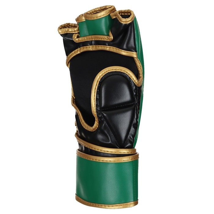 Перчатки для смешанных единоборств защищают кисти при ударах. Открытые фаланги позволяют бороться, не стесняя движений. Анатомический крой перчатки повторяет естественную форму кулака. Широкий ремень с липучкой плотно прилегает к руке и предотвращает риск возникновения травмы запястья.