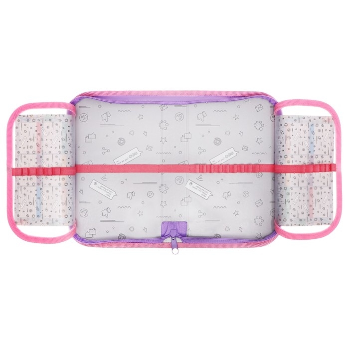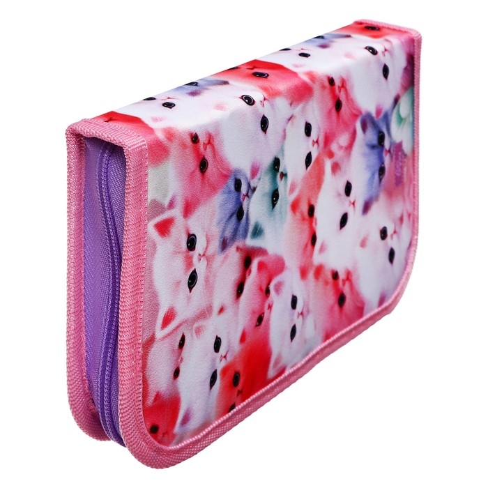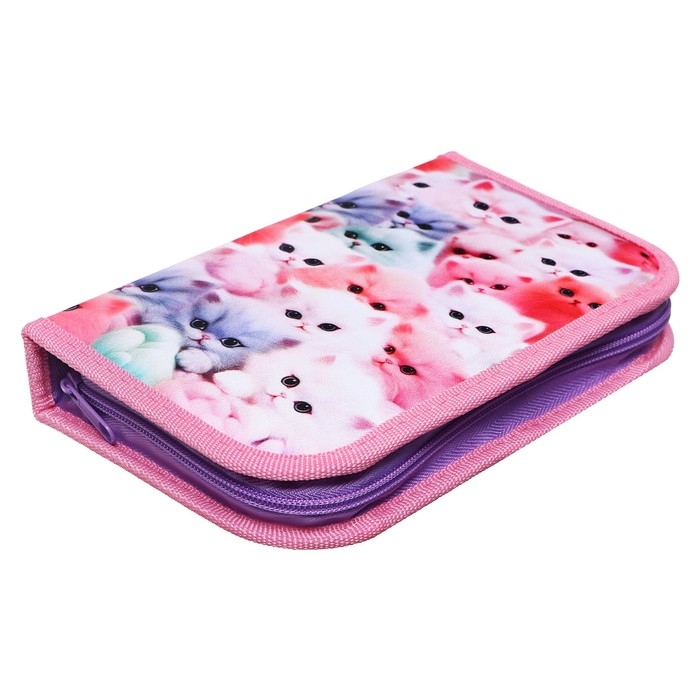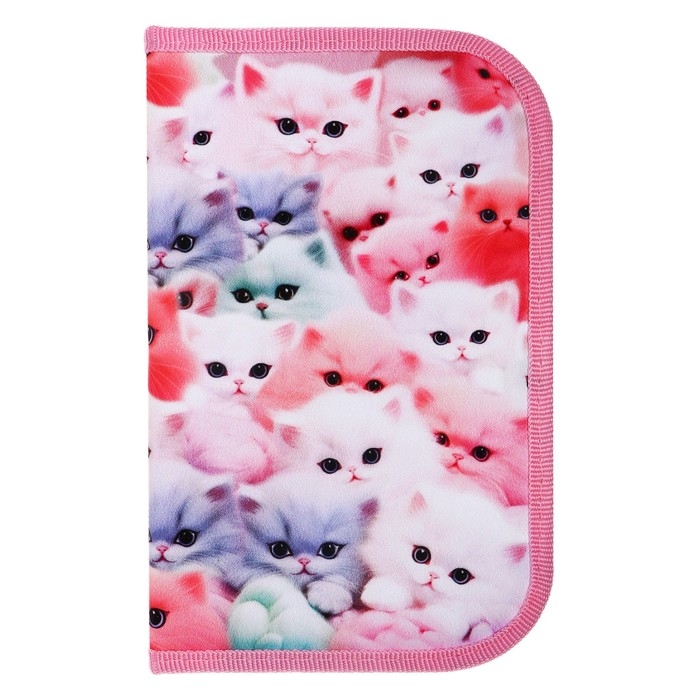 Пенал 1 секция, 130 х 210 х 40 мм, 2 откидные планки, тканевый, Calligrata TOP, Content "Котики пушистики"