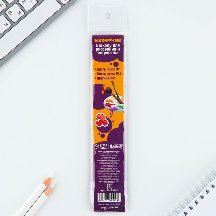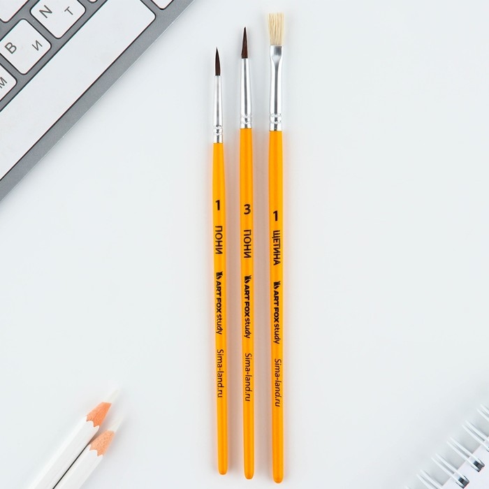 Кисть для рисования набор 3 шт. пони №1, №3, щетина №1 для школы