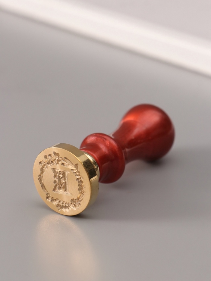 Печать для сургуча с пластиковой ручкой "Венок с буквой E" 2,5х2,5х6,3 см