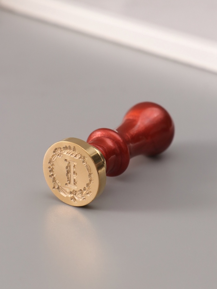 Печать для сургуча с пластиковой ручкой "Венок с буквой I" 2,5х2,5х6,3 см