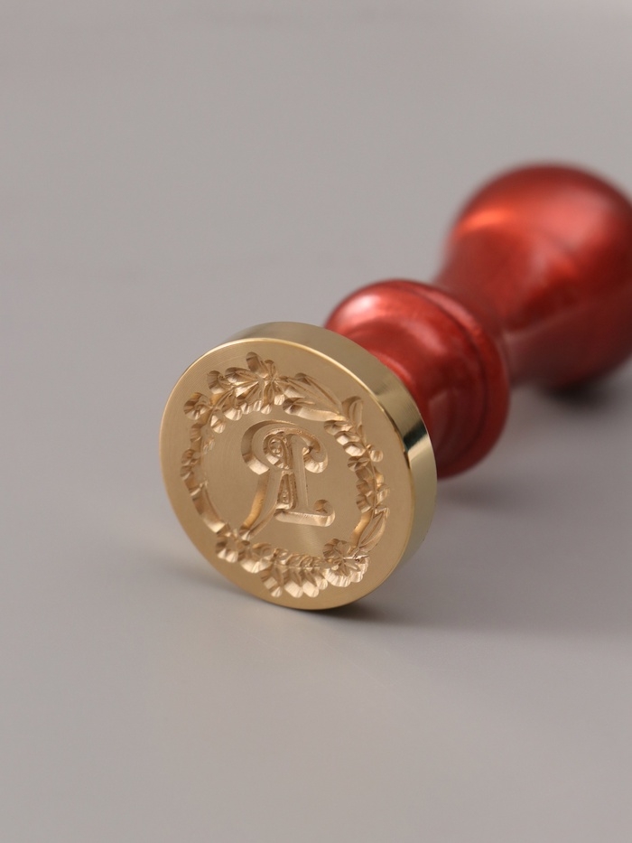 Печать для сургуча с пластиковой ручкой "Венок с буквой R" 2,5х2,5х6,3 см