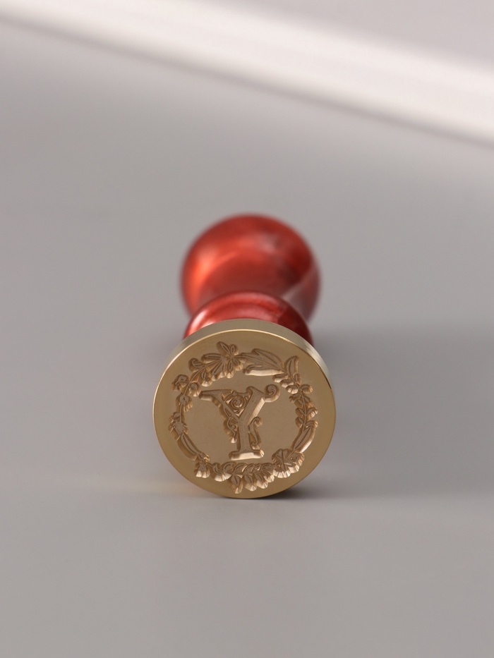 Печать для сургуча с пластиковой ручкой "Венок с буквой Y" 2,5х2,5х6,3 см