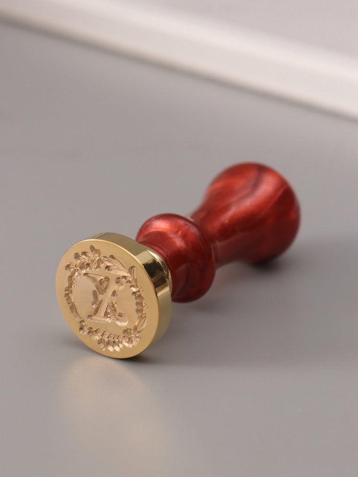 Печать для сургуча с пластиковой ручкой "Венок с буквой X" 2,5х2,5х6,3 см