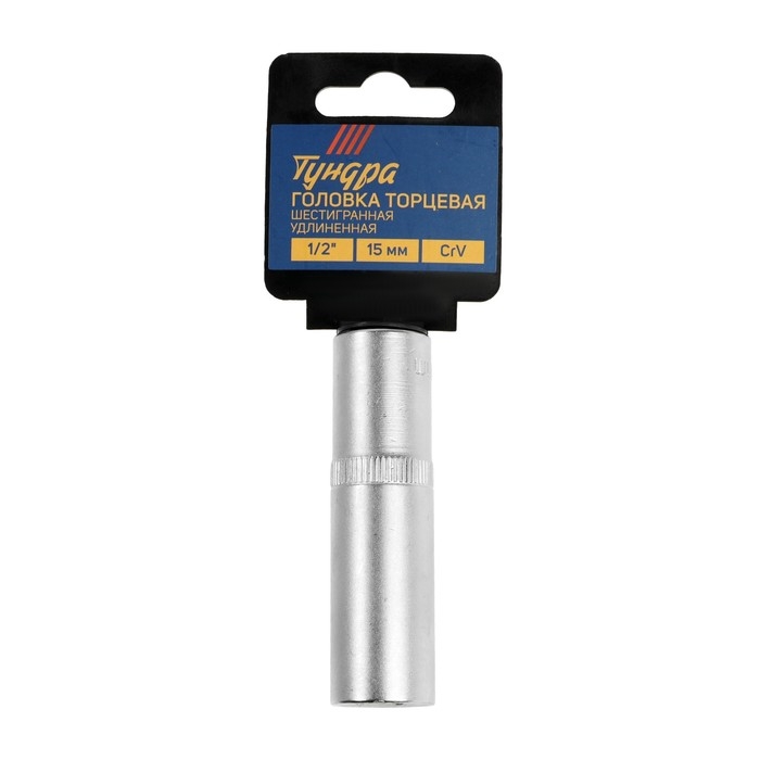 Головка торцевая шестигранная удлиненная ТУНДРА, под квадрат 1/2", 15 мм, CrV