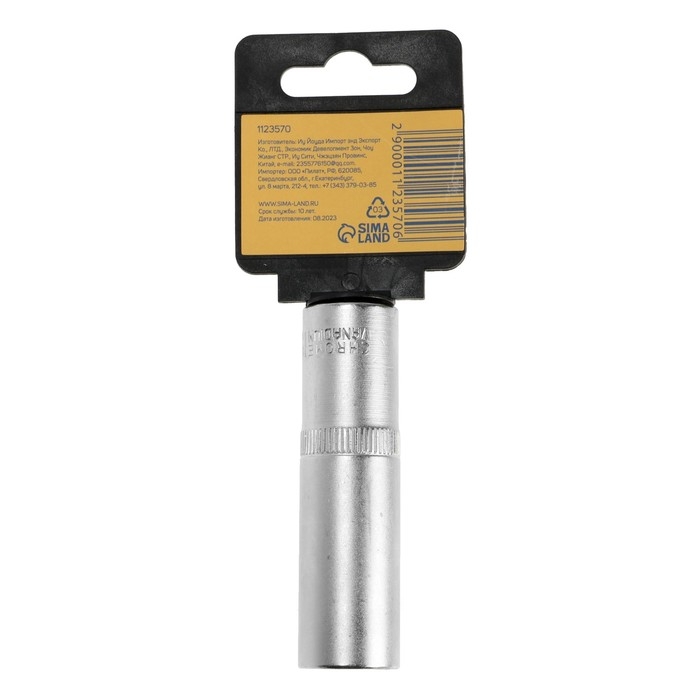 Головка торцевая шестигранная удлиненная ТУНДРА, под квадрат 1/2", 10 мм, CrV