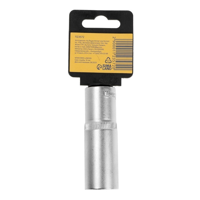 Головка торцевая шестигранная удлиненная ТУНДРА, под квадрат 1/2", 17 мм, CrV