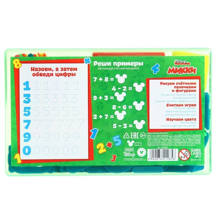 Касса цифр и счетных материалов "Учимся считать", 132 элемента, пластик, Микки Маус МИКС