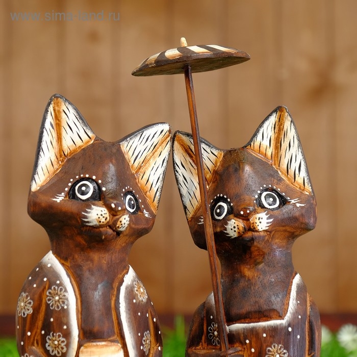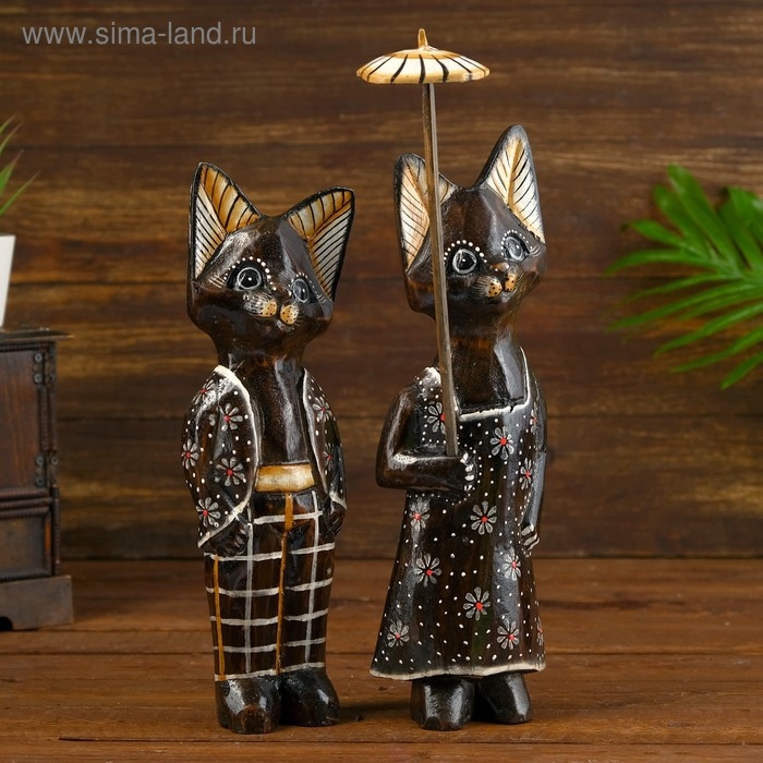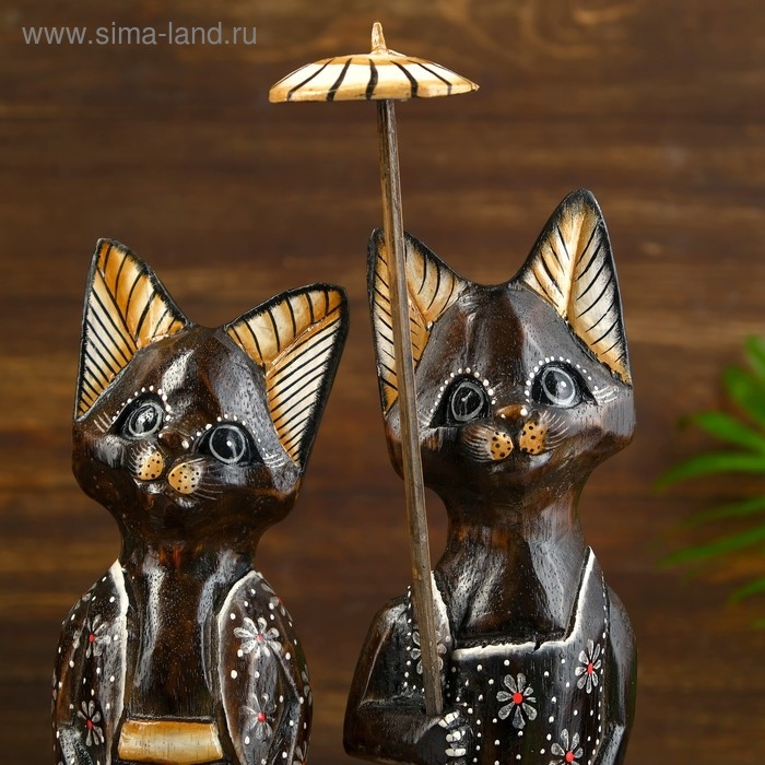 Индонезия считается «страной кошек». Индонезийский народ довольно трепетно относятся к кошкам и считают, что это домашнее животное олицетворяет любовь. Чаще всего именно кошек изображают на картинах, панно, создают удивительные статуэтки, стараясь сделать их разных цветов и форм. Сувенир дерево "Парочка котишек" (набор 2 шт) 30х30х9 см станет актуальным подарком на любой праздник будь то свадьба или новоселье, День рождения или юбилей, ведь кошка символизирует тепло домашнего очага, грациозность, красоту и свободу.