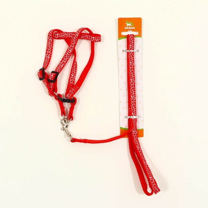 Яркий прогулочный комплект для собак прошитый . Шлейка регулируется а ремни шлейки не давят на грудь и шею а равномерно распределяют нагрузку. Шлея для собак 3 , 5 , 10 , 15, 20 кг мелких пород и кошек . Шлейка текстильная , регулируется пластиковыми креплениями. Поводок крепится к металлическому кольцу карабином. На спине амуниция фиксируется застежкой из пластика. Шлейка исключит побег животного, если правильно подобрать размер и отрегулировать ремни.